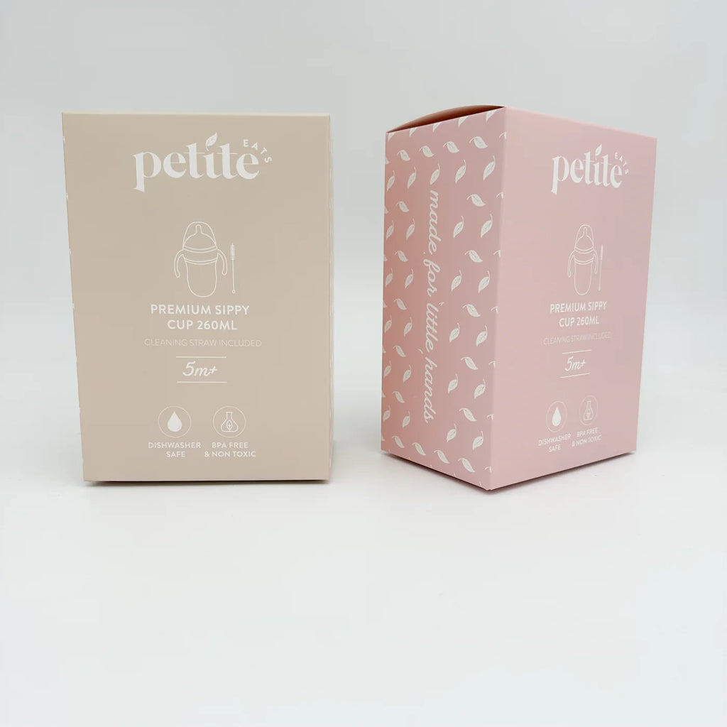 Our premium sippy cup has been thoughtfully designed in both form and function. Our teats are 100% silicone, making them easy to clean and soft on your little ones gums. Each sippy cup has a weighted straw meaning that no matter which way they are tipped, the straw will remain in the water and bub will be able to drink. Our sippy cups can also be used as an open cup.
