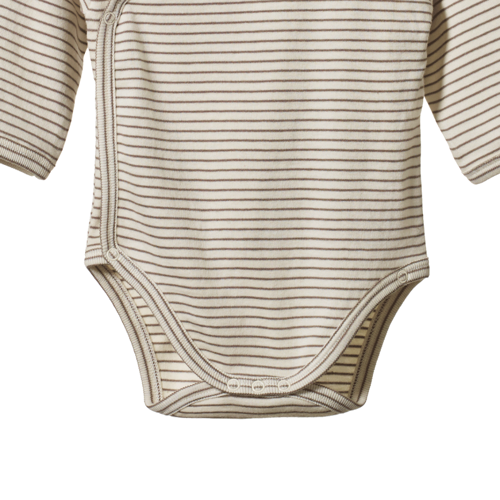 Long Sleeve Kimono Bodysuit | Mushroom Pinstripe
