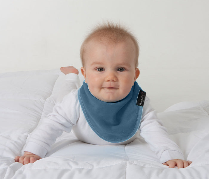 Bandana Wonder Bibs® are perfect for dribbly babies. They bunch around the neckline, creating folds that wipe at baby’s neck as they turn their head, keeping them clean and dry. It’s adjustable, absorbent, and easy-care. Excess moisture can inflame dribble rash and eczema. Our bibs gently draw excess moisture away from the skin without irritation. Made from 100% cotton towelling with a nylon water-resistant backing to keep their clothes dry underneath.