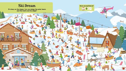 Where is Santa hiding? This enchanting search-and-find book takes you from busy skies to fantasy kingdoms. Spot Santa